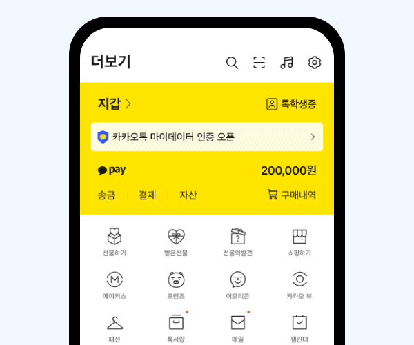 발급받은 톡학생증은 카카오톡의 [더보기탭 > 톡학생증] 또는 [지갑 > 신분/증명탭]에서 확인할 수 있습니다.